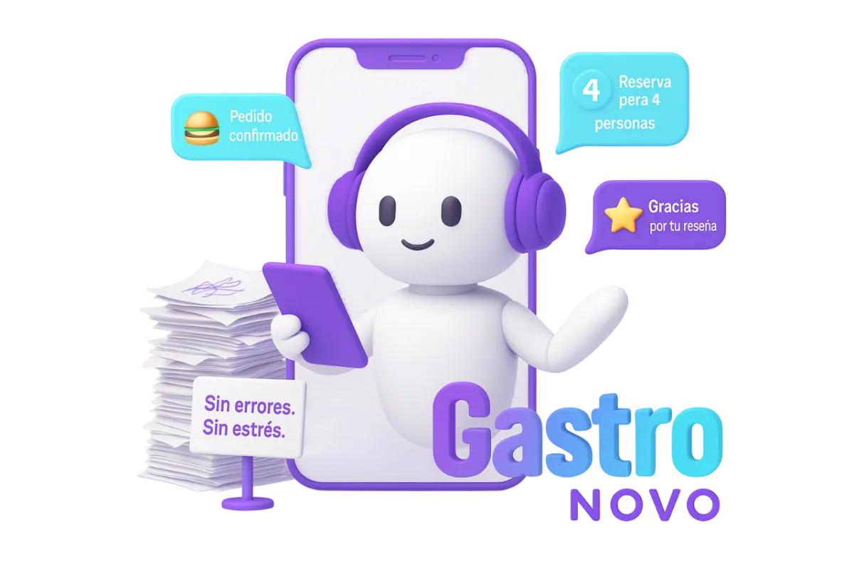 Porque nadie entiende tu restaurante como tú… excepto GastroNOVO. Atiende cada cliente con la misma dedicación, rapidez y buena vibra que tú pondrías en persona. Solo que él nunca se cansa, nunca olvida y siempre contesta con una sonrisa (digital).